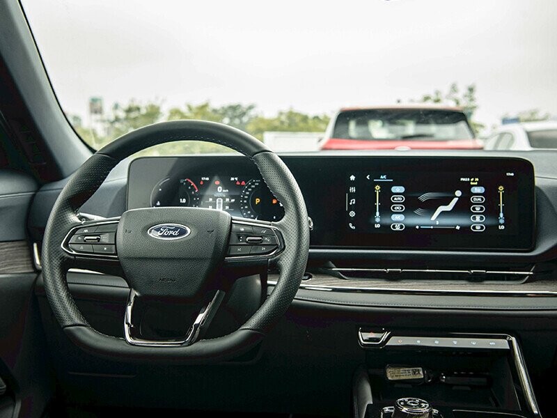 Sự khác biệt nằm ở màn hình 7 inch sau vô-lăng, thay vì 12 inch như bản Titanium X. Màn hình trung tâm vẫn là loại 12 inch như các bản khác, có giao diện tiếng Việt, hỗ trợ Apple CarPlay/Android Auto. Âm thanh giảm bớt 2 loa, còn 6 loa.